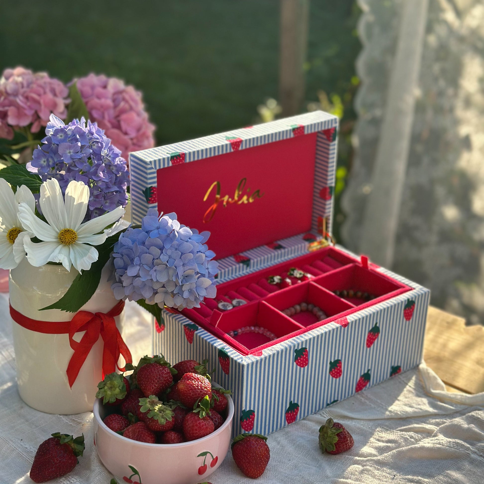 Introducing a distinctive jewellery box designed to safeguard your treasured keepsakes, jewels, and beloved accessories. The Large Velvet Jewellery Box is uniquely crafted with dual layers, including a removable top layer, three sectioned compartments, and a plush ring holder.